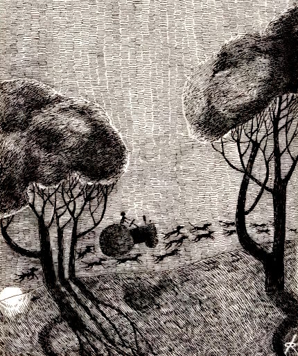 Rolypoly has been missing for most of the story, and Missis refuses to go home without him, pleading to go back and look, but Pongo keeps urging her to move forward, they have no time to stop and search… and maybe it’s because the image in a storybook messed me up as a kid, but it brings to mind Lot’s wife looking back upon Sodom and turning into a pillar of salt.