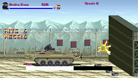 I’ve never touched MUGEN either, but I assume they have similar degrees of variables and properties to play with… and AOCI, for all its extraneous bells and whistles, feels a bit ‘default’ at times. Your movement speed is tremendously sluggish, making avoiding rockets and flamethrowers a bit of a pickle, and none of the vehicle stages are any faster either, which is bad news when you’re such a massive target.