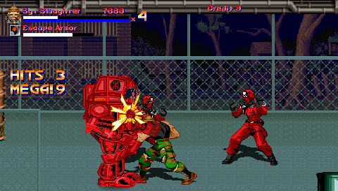 Right off the bat, Assault on Cobra Island (or AOCI as it shall be summarised for brevity’s sake) is more immediately compelling because you can just shoot a bitch at any time. In addition to your standard punch, you can also use a special attack, spray machine gun fire forward, and huck a grenade, the three of which all drain from your stamina metre, which slowly refills automatically.