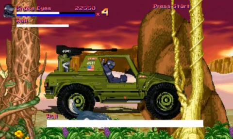On the flip-side, you can just as easily steamroll enemies without them getting a word in. Running attacks and grenades are great for juggling, able to keep baddies in the air the entire length of the screen if you keep spamming them. Zippier foes like Cobra Commander are hard to land clean hits on, but when you do, you can whip out your machine gun and chew up their healthbar before they can recover. It’s by no means a balanced game, but that makes it all the more rewarding when you find ways to just mess up the competition.