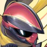 ◆ Helmet: A dark grey or brown, with a red match near the mouth-guard and three streaks along the top and sides; they don't meet at the back. Depicted with forward-facing 'points', which are probably antithetical for head protection, but make a striking silhouette.