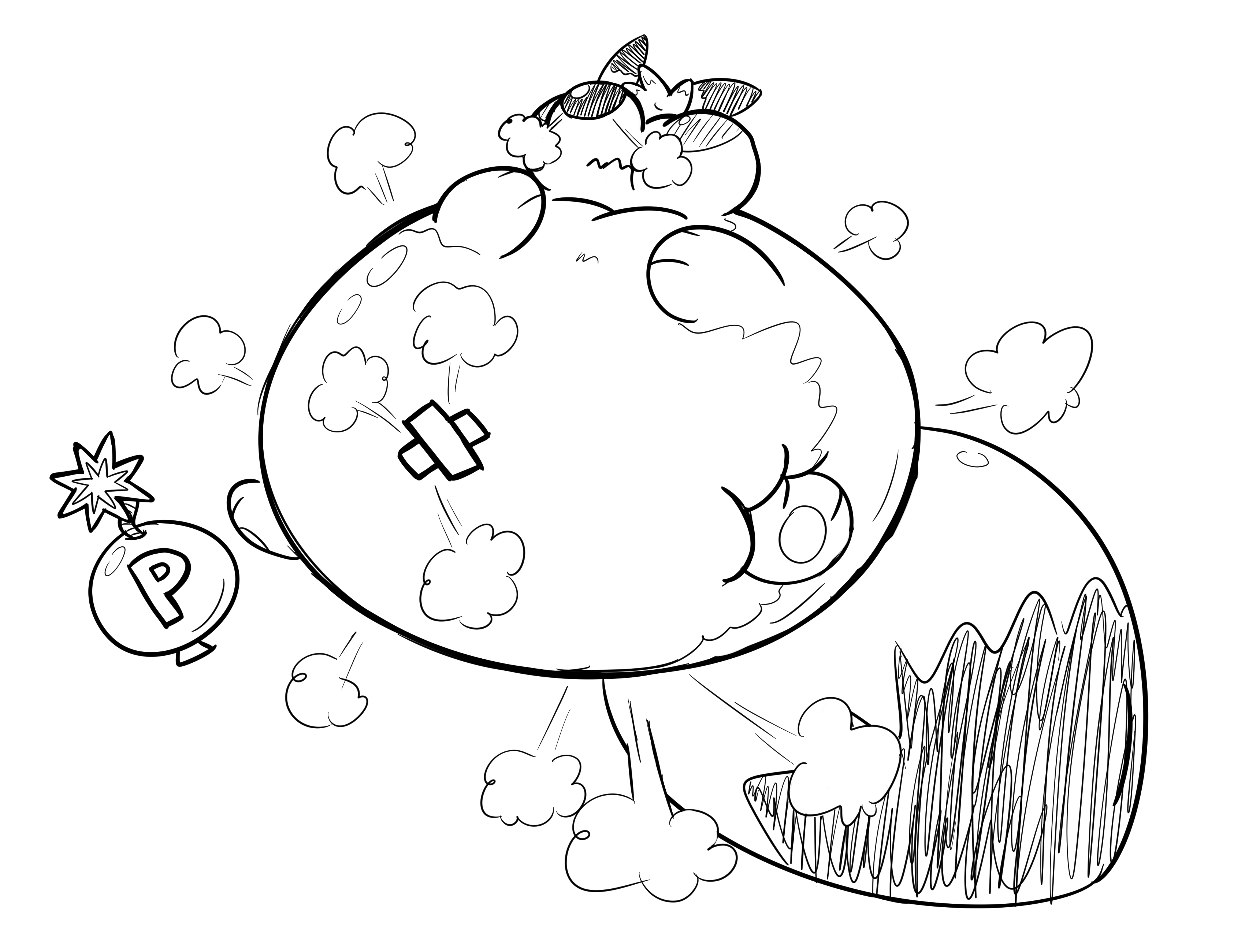 Where Marui's body is pretty spherical, Jyamarui's is more like a dumpling or a potato sack. It smushes and spreads out, and droops under gravity. Some artists depict Jyamarui with legs -- I mean, you gotta have legs to have feet, right? -- but whatever it looks like under x-ray, on the outside it just looks like Jyamarui's body is a big doughy potato sack. See the Q & A!