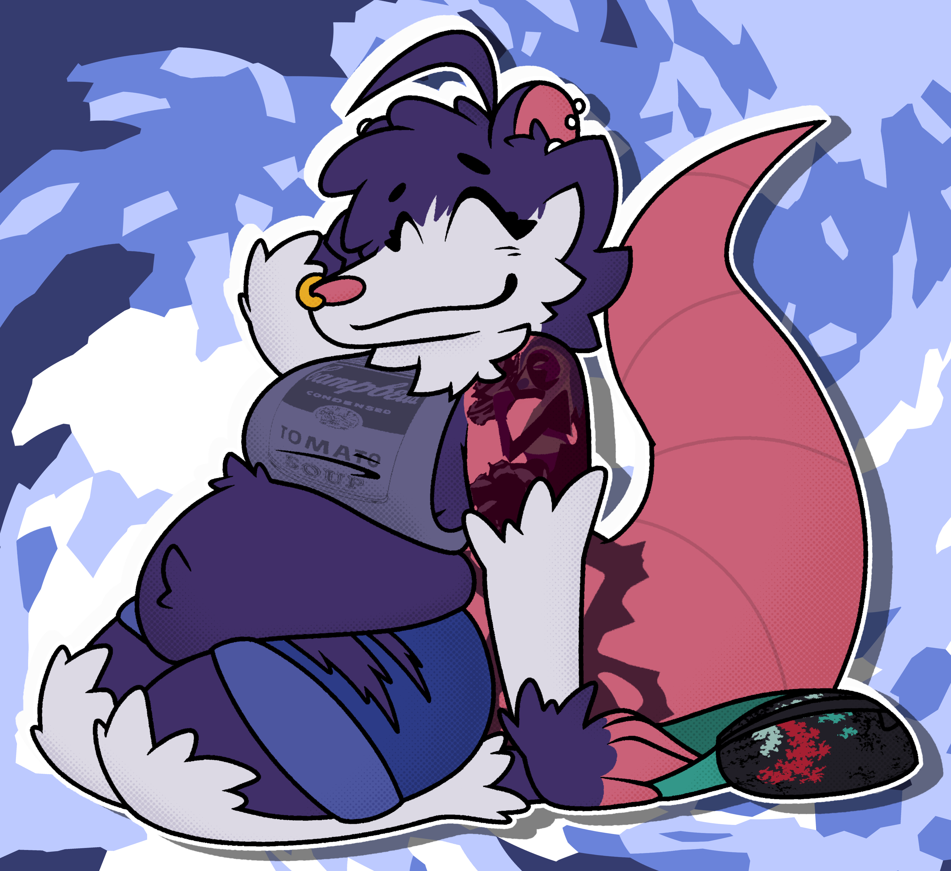 ◆ Tattoos! The upper part of her left arm is shaved to show the tattoo on her skin, of a figure in profile surrounded by rose vines. About a fifth or a quarter of her tail starting from the base is tattooed, a pattern resembling rose thorns.